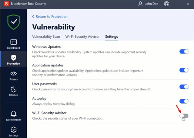 Απενεργοποιήστε τον σύμβουλο ασφαλείας WiFi στο Bitdefender